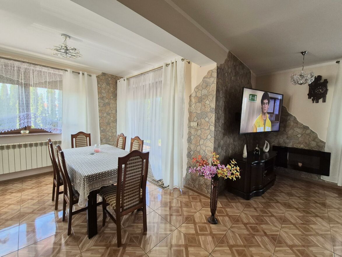 Materiały zastosowane do budowy domu zostały dobrane skrupulatnie, co daje finalnie solidną podstawę wykończenia. Dom jest gotowy do zamieszkania. Rozkład pomieszczeń został zaplanowany tak, aby aneks kuchenny płynnie łączył się z jadalnią oraz salonem z przytulnym, ekologicznym kominkiem. Z salonu można wyjść na taras, który stanowi idealne miejsce do relaksu na świeżym powietrzu.