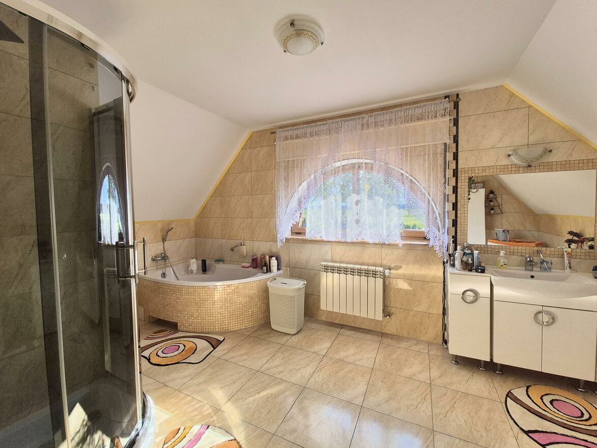 - Dom parterowy, murowany, ocieplony, z poddaszem użytkowym, częściowo podpiwniczony, wyposażony w monitoring i alarm